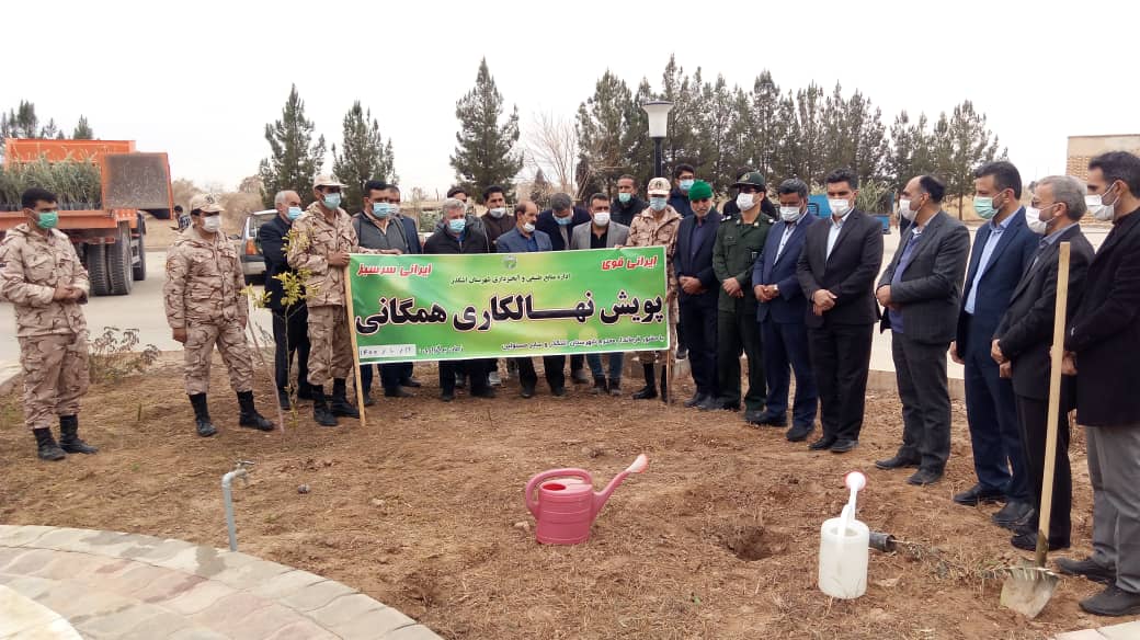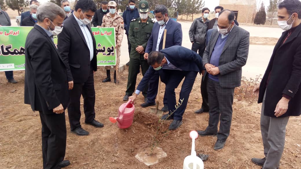 کشت نهال با حضور فرماندار و دهیاران روستای بخش مرکزی اشکذر در محل اداره منابع طبیعی