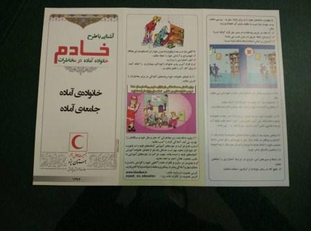 و در پایان آموزش بین شرکت کنندگان بروشورهای آشنایی با کمک های اولیه و آشنایی با طرح خادم ( خانواده آماده در مخاطرات ) توزیع گردید.