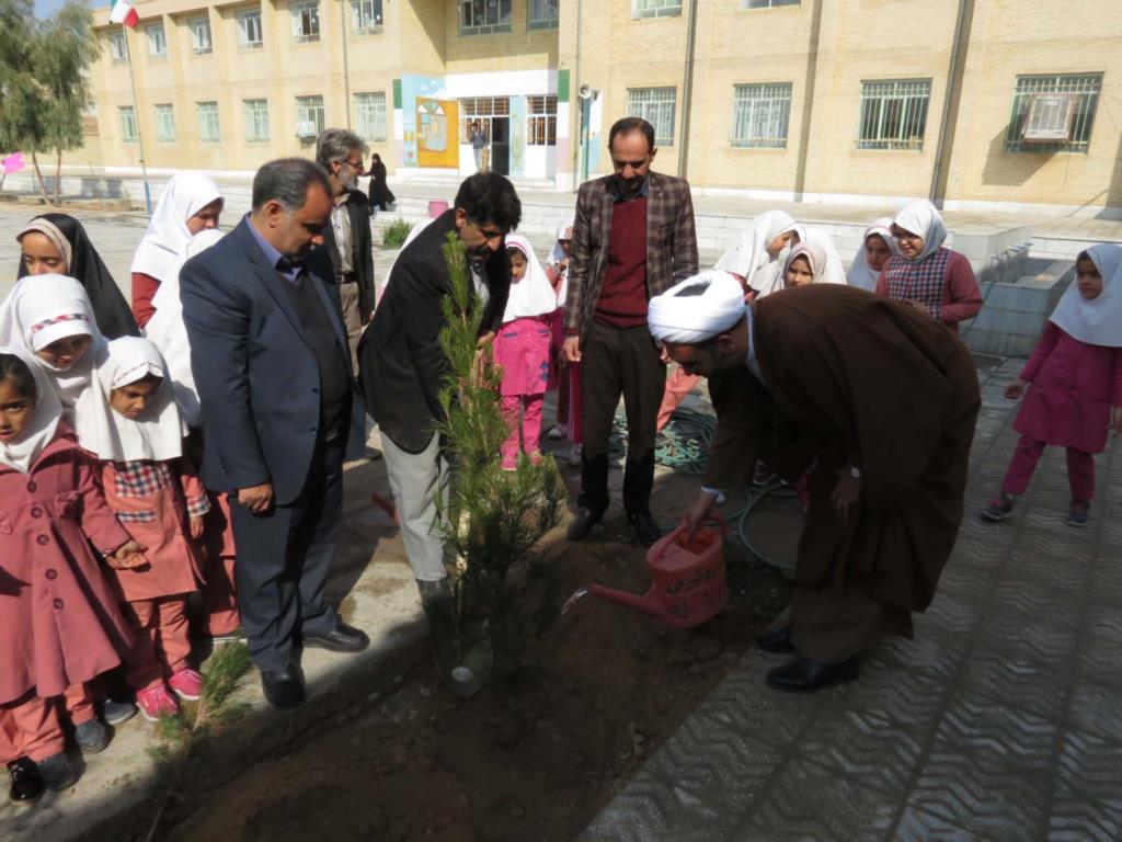 در ادامه با حضور امام جمعه شهرستان حجت الاسلام محی الدینی ، مدیریت آموزش پرورش آقای کارآموز و پرسنل منابع طبیعی ، دانش آموزان و معلمان با غرس نهال اين هفته را گرامی داشتند.