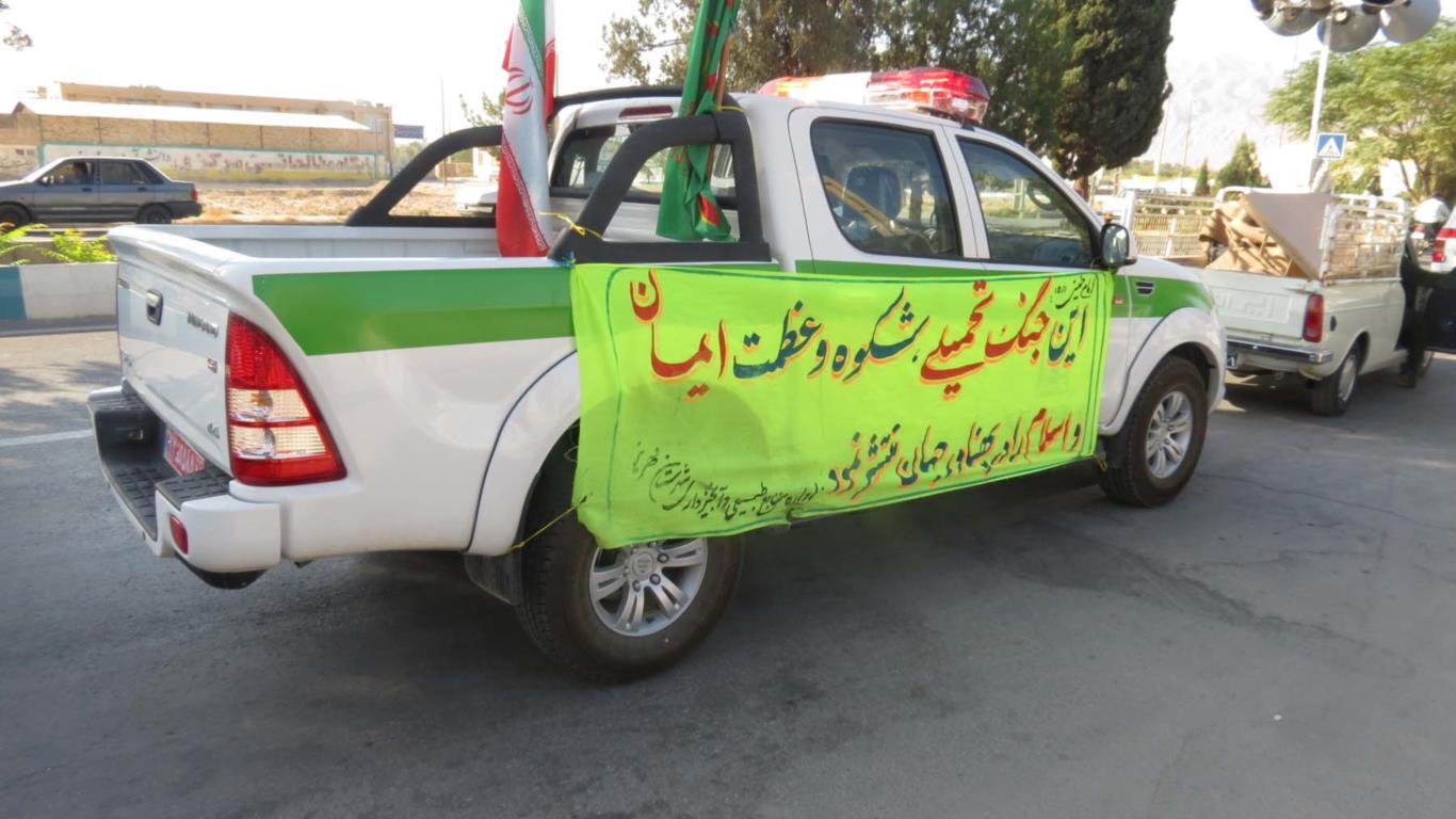 در این رژه سه دستگاه خودرو اداره منابع طبیعی و آبخیزداری شهرستان به همراه دیگر خودورها، پس از ادای احترام به شهداء حركت خود را آغاز و پس از طی نمون مسیرهای تعیین شده نمایی از آمادگی خود را به معرض تماشا گذاشتند.