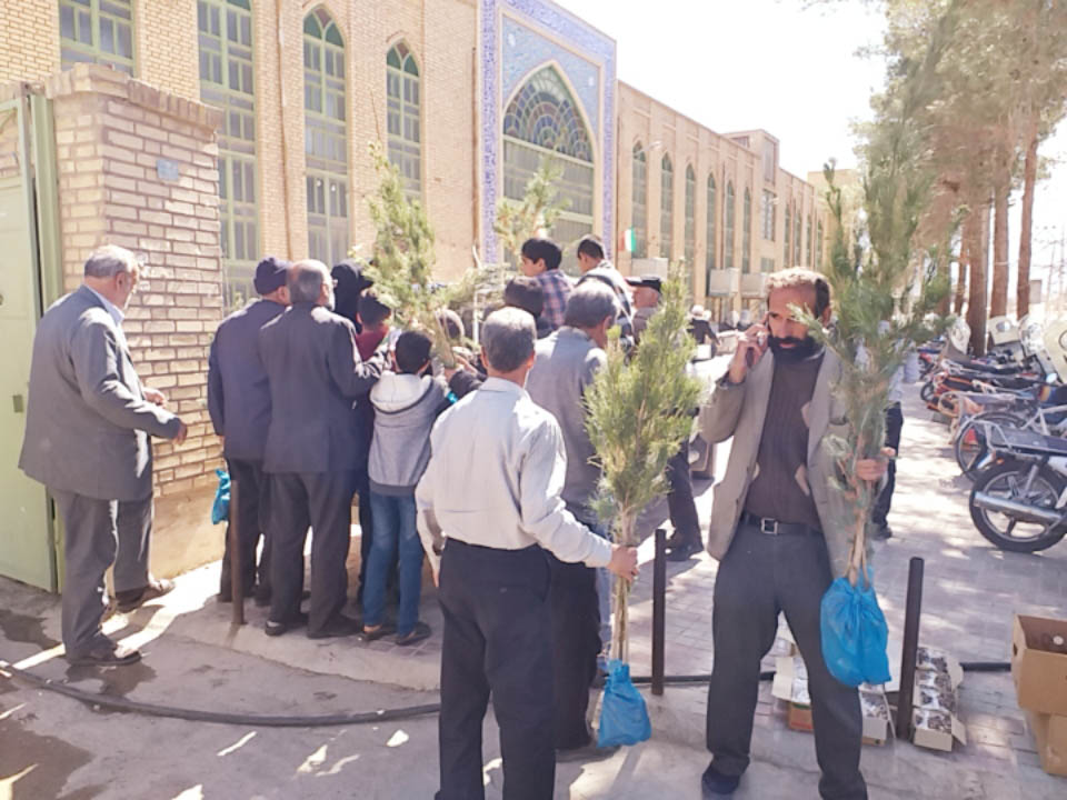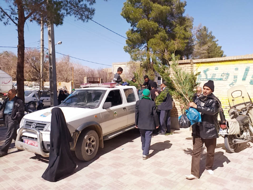 توزيع بيش از پانصد اصله نهال رايگان در محل برگزاري نماز جمعه شهرستان مهريز
