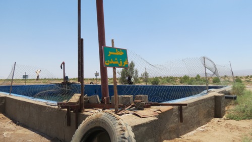 استقبال از مرگ با شنا کردن در استخر ذخيره آب منطقه كشت بيابان زدايي بافق