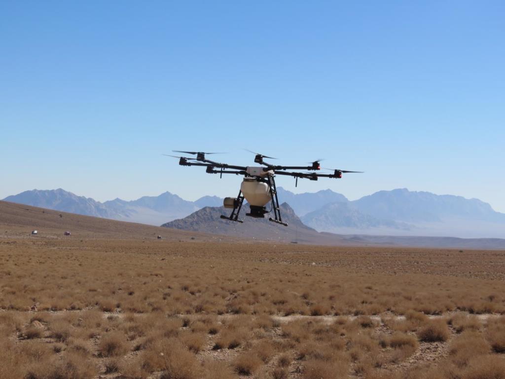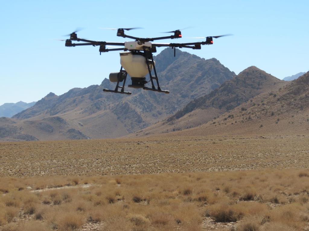 بذرپاشي آزمايشي با ساتفاده از پهباد در مراتع شهرستان مهريزانجام شد