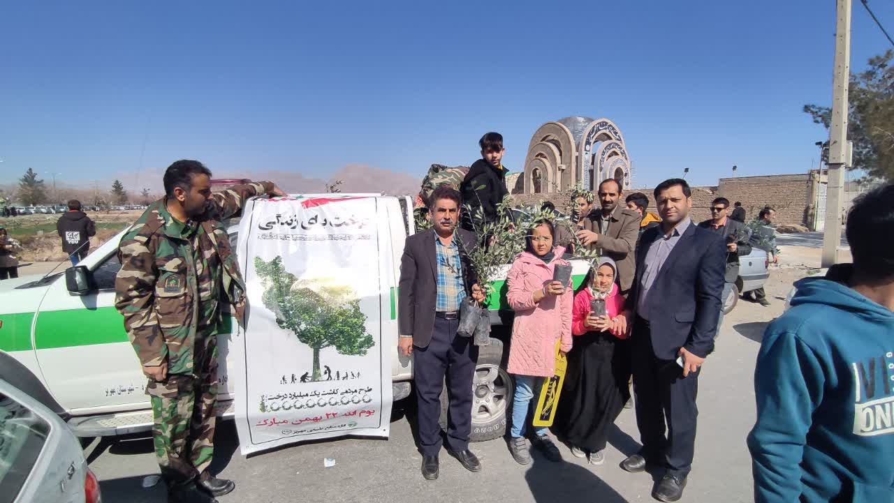 توزیع نهال توسط اداره منابع طبیعی و آبخیزداری شهرستان مهریز در یوم الله 22 بهمن