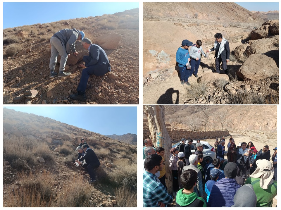 بذر کاری با حضور دانش اموزان در استانه هفته منابع طبیعی در مراتع روستای هامانه بخش خضراباد