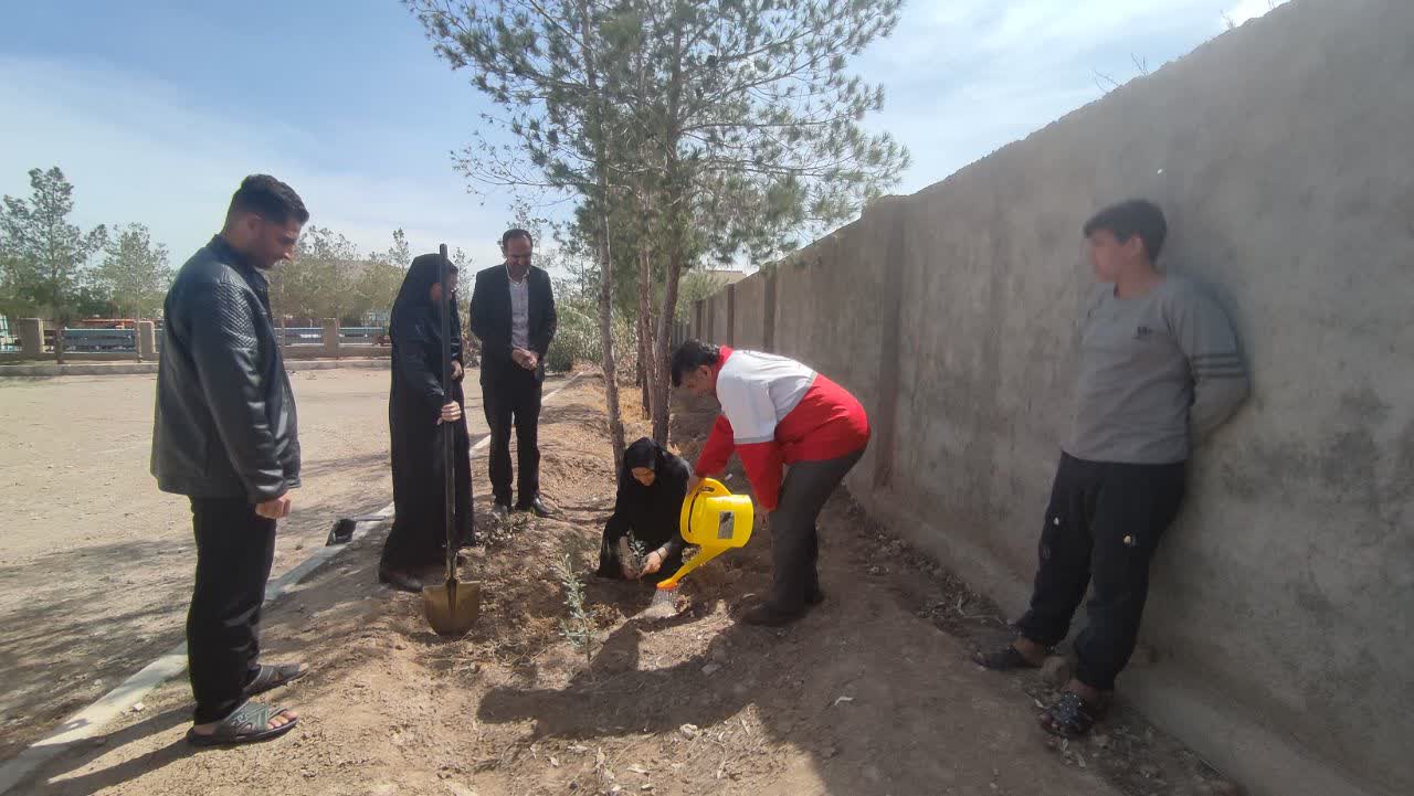 غرس نهال و غبار روبی گلزار شهدای عصمت آباد شهرستان مهریز توسط پرسنل اداره منابع طبیعی و هلال احمر این شهرستان