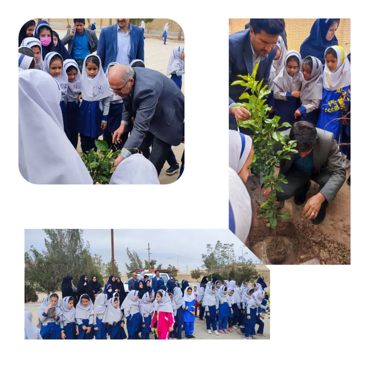 کشت نهال در دبستان دخترانه کوثر شهرستان میبد در آخرین روز از هفته منابع طبیعی