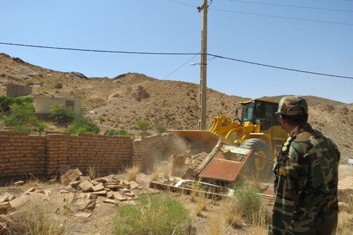 اجرای حکم خلع ید و قلع و قمع ساخت و سازهای غیر مجاز در بیش از 5 هزار و 600 مترمربع از اراضی ملی شهرستان بافق