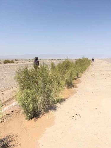 در اين بازديد كه با حضور کارشناسان بیابان شهرستان بافق صورت گرفت، نحوه آبياري و مراقبت كشت هاي سنواتي 600 هكتاري سال 1393 مورد ارزيابي قرار گرفت.
