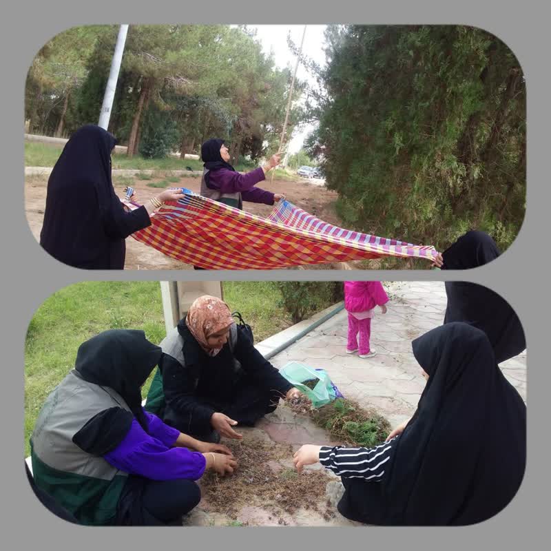 حضور بانوان بسیجی در نهالستان اداره منابع طبیعی و آبخیزداری شهرستان اشکذر جهت همکاری جمع آوری بذر