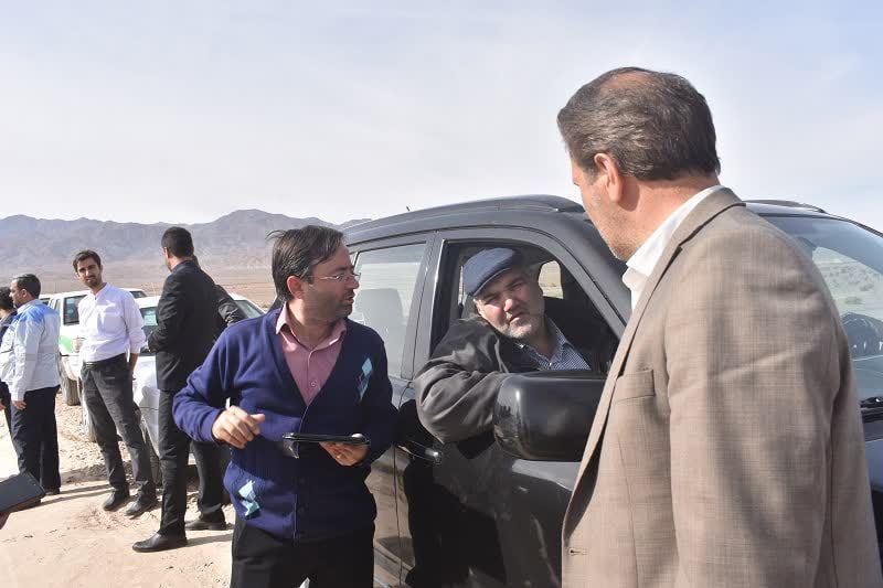 بازدید سردار علیرضا درُ (معاون آبخیزداری قرارگاه جهادی توسعه و پیشرفت همه جانبه وزارت کشور) و دکتر محمد علی طالبی ( معاون برنامه ریزی راهبردی قرارگاه جهادی توسعه و پیشرفت همه جانبه وزارت کشور) و رئیس اداره منابع طبیعی و آبخیزداری شهرستان و رئیس و نماینده دیگر ارگان های شهرستان از محل اجرای هلالی های آبگیر طرح مردمی کاشت یک میلیارد درخت در شهرستان بهاباد.
