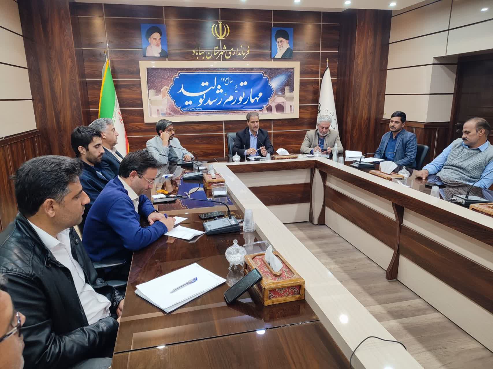 در مورخ 5 آذر ماه سال جاری در ساعت 16 جلسه ای با حضور فرماندار، معاون عمرانی فرمانداری، بخشدار مرکزی، بخشدار آسفیچ، مدیر جهاد کشاورزی، رئیس اداره منابع طبیعی و آبخیزداری، کارشناس آب منطقه ای و دیگر اعضای کارگروه شهرستان که در محل سالن جلسات فرمانداری شهرستان بهاباد برگزار شد.