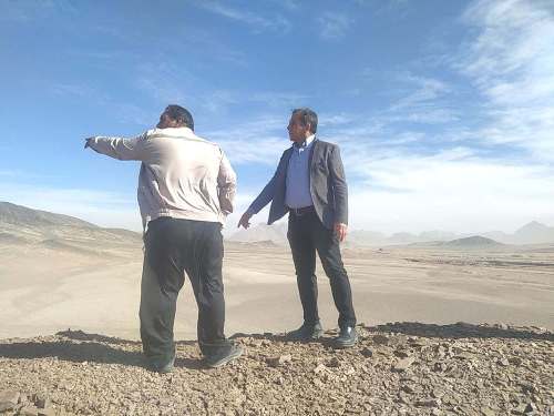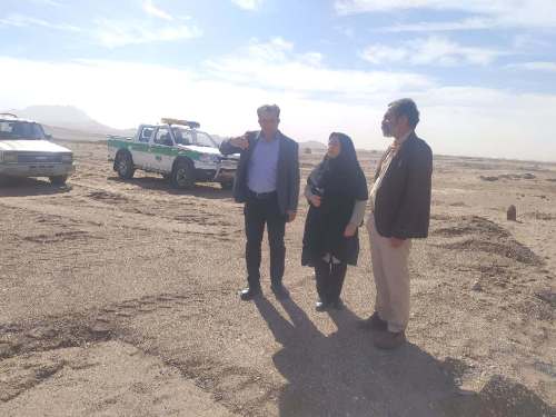 رييس اداره منابع طبيعي و آبخيزداري شهرستان بافق و رييس اداره كنترل سيلاب و آبخوان داري اداره كل منابع طبيعي و آبخيزداري استان يزد از بند خاكي روستاي حسن آباد شهرستان بافق جهت ترميم اين بند خاكي بازديد كردند.