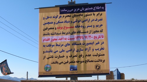 هر گونه دخل و تصرف در اراضي دولتي و بنياد مسكن و همچنين حريم و بستر رودخانه ممنوع بوده و متصرفين كه مجوز از دستگاه هاي ذيربط نداشته باشند تا تاريخ 1399/07/20 نسبت به اخذ مجوز اقدام، در غير اينصورت دستگاه هاي مرتبط موظف به تخريب و آزادسازي اراضي ملي مي باشند.