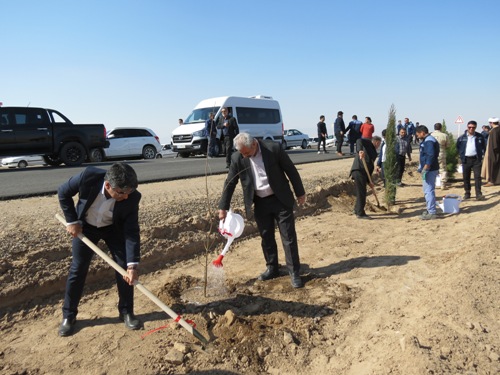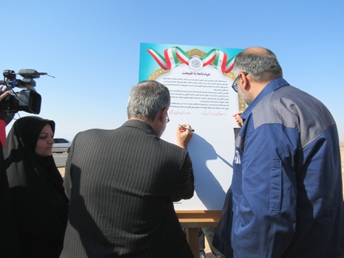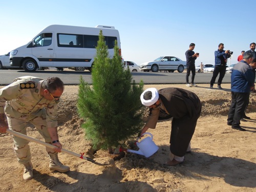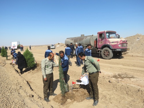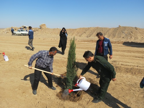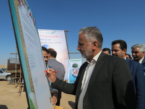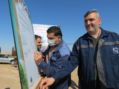 غرس 50 اصله نهال سرو، کاج و توری و امضای عهدنامه با طبیعت در محل سایت پروژه آهن اسفنجی شرکت سنگ آهن مرکزی ایران بافق این شهرستان