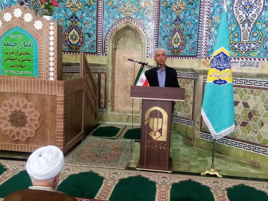 سخنرانی اقای دکتر فاضل پور رئیس اداره منابع طبیعی وآبخیزداری شهرستان اشکذر درنماز جمعه شهرستان به مناسبت هفته منابع طبیعی